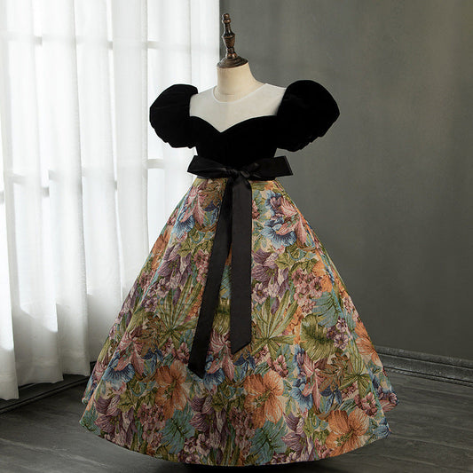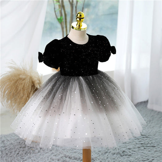 Robe de princesse en tulle noir avec nœud pour fille