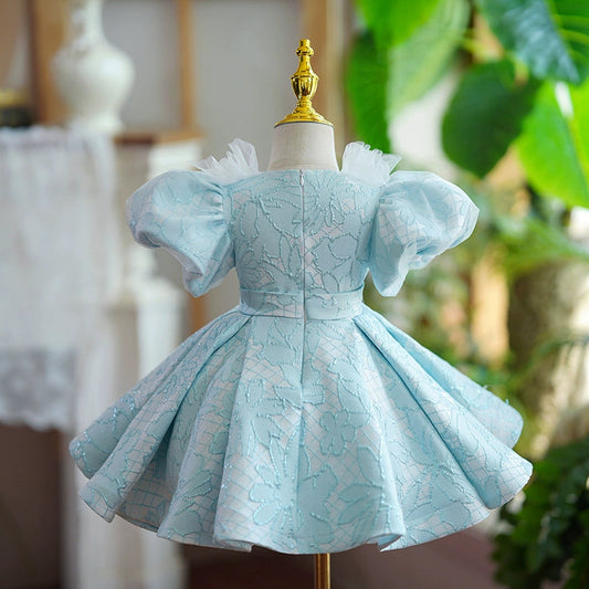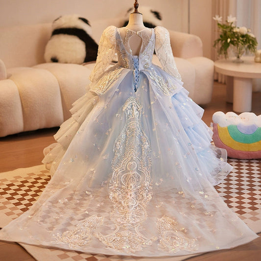 Robe de princesse bleue pour fillette - Robe à volants en dentelle et tulle