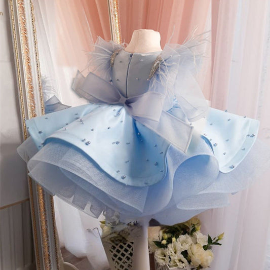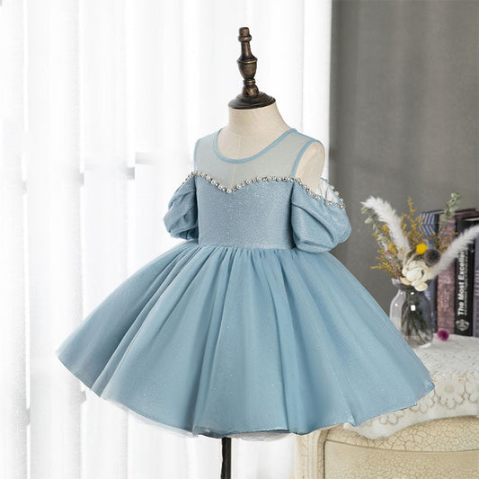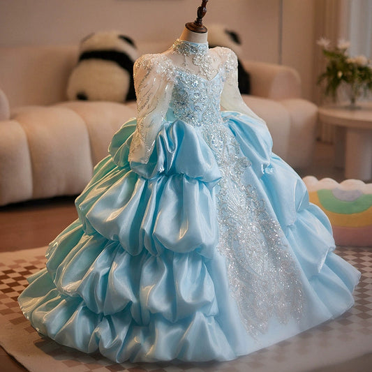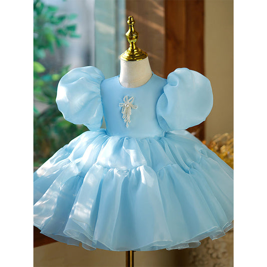 Robe de princesse en organza bleu avec manches perlées