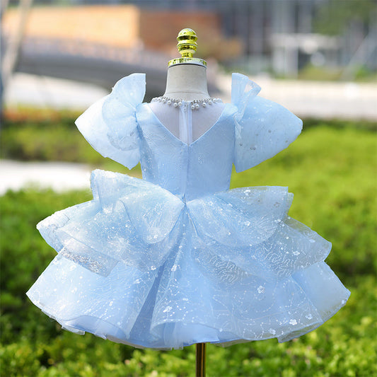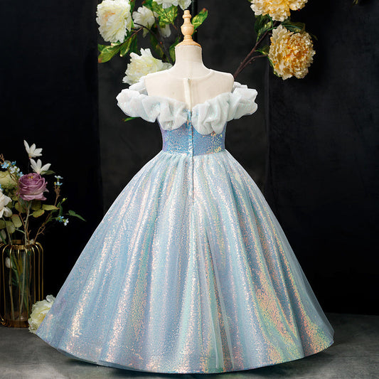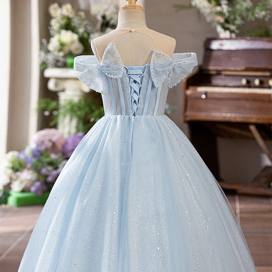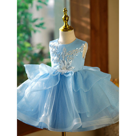Robe de princesse bleue trapèze pour fille – Tulle et paillettes