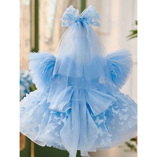 Robe de princesse bleue coupe trapèze pour fille – Tulle et mousseline