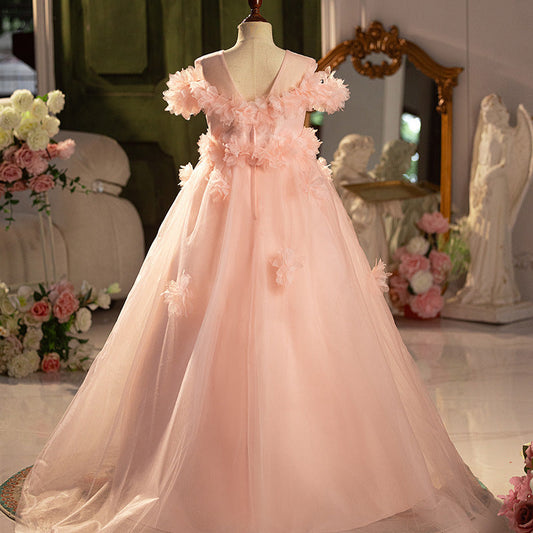 Robe de princesse en tulle pour fillette, longueur thé, avec ornements floraux