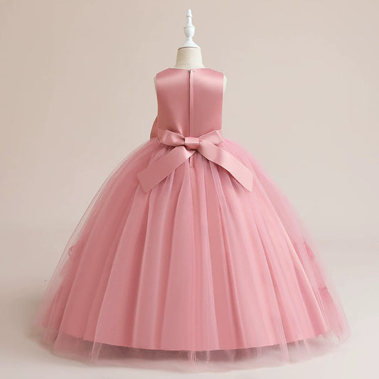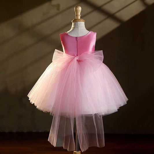 Robe courte sans manches en satin et tulle rose pour fille