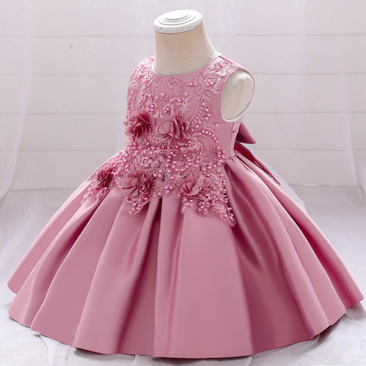 Robe de princesse mi-longue pour fille avec satin, dentelle et nœuds