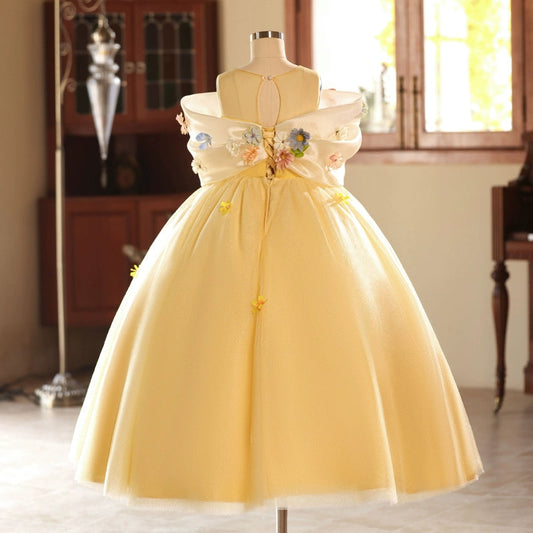 Robe de princesse jaune coupe trapèze pour fille – Tulle et mousseline