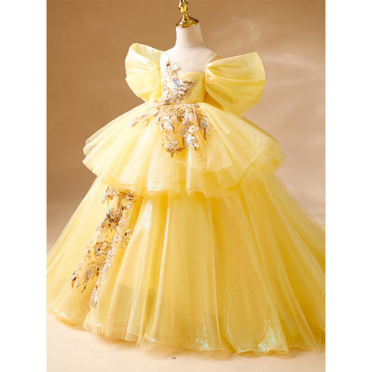 Robe de princesse en tulle violet avec ornements de fleurs et de papillons pour filles