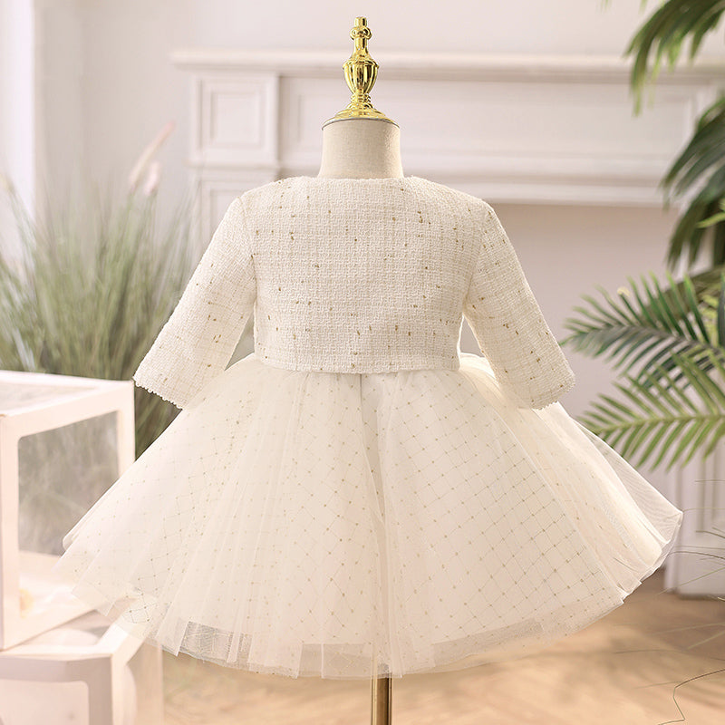 Robe de princesse blanche pour fillette - Tulle, paillettes et manches bouffantes